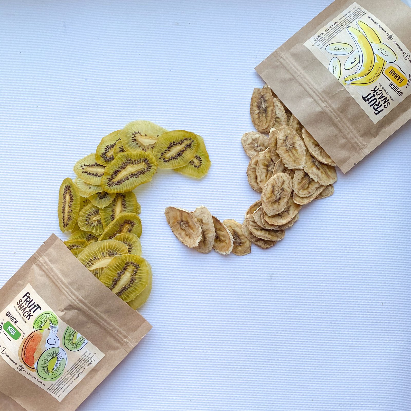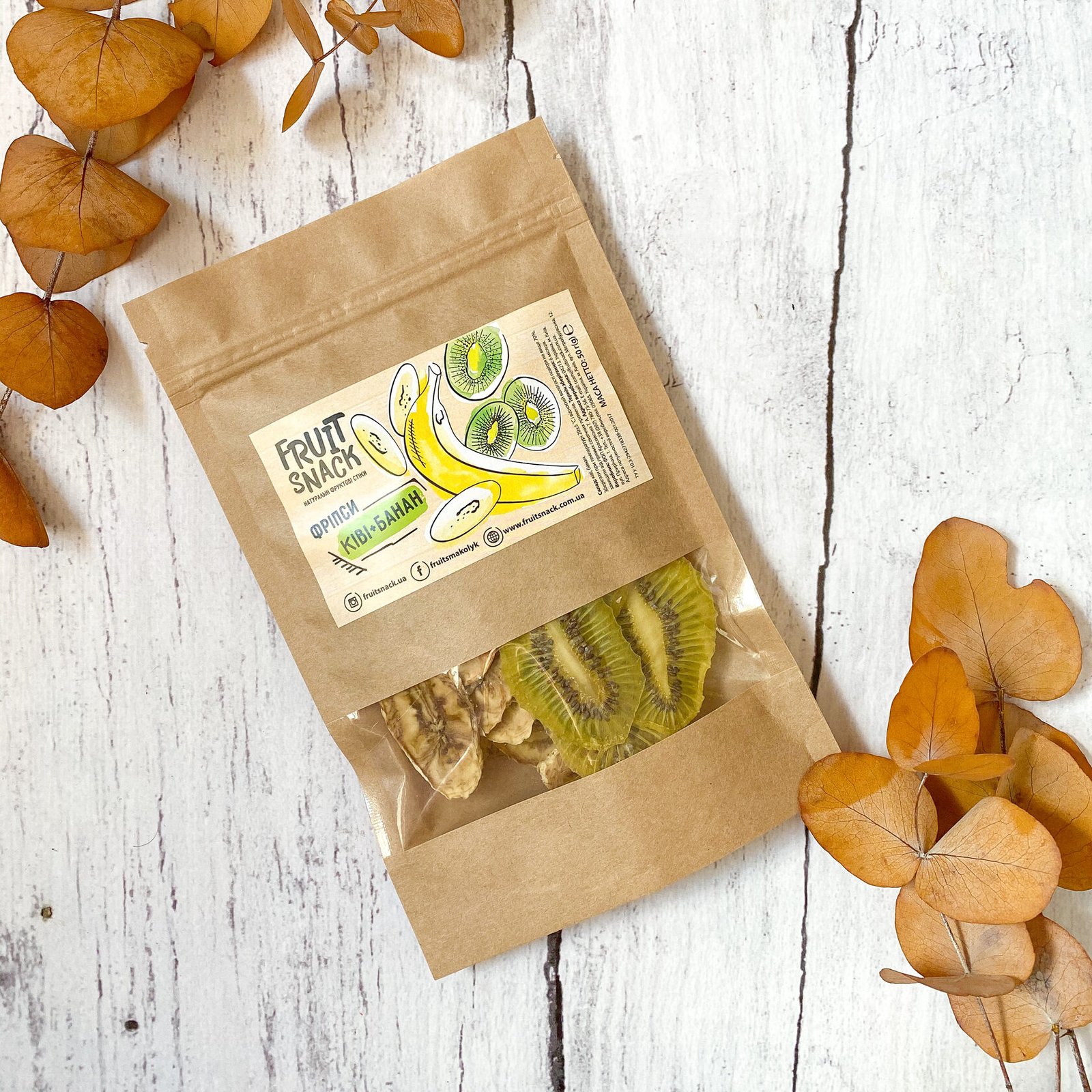 Натуральні фріпси з поєднанням ківі та банану, висушені при низькій температурі для збереження вітамінів і яскравого смаку